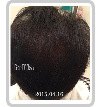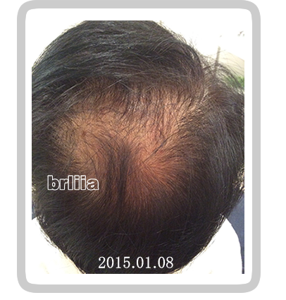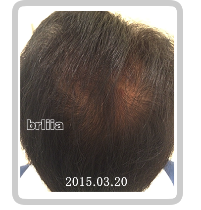 年齢54才。男性。頭頂部から前頭部にかけて、薄毛の状態。根元の立ち上がりも弱く、元気な育毛を求められての施術。
